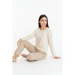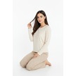 Üstü Love Yazılı Altı Desenli Elite Viscose Uzun Pijama Takımı Krem 3562 Krem