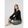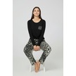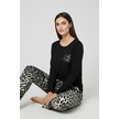 Üstü Yazılı Altı Leopar Desenli Elite Viscose Pijama Takımı Uzun Siyah 3551 Kahverengi