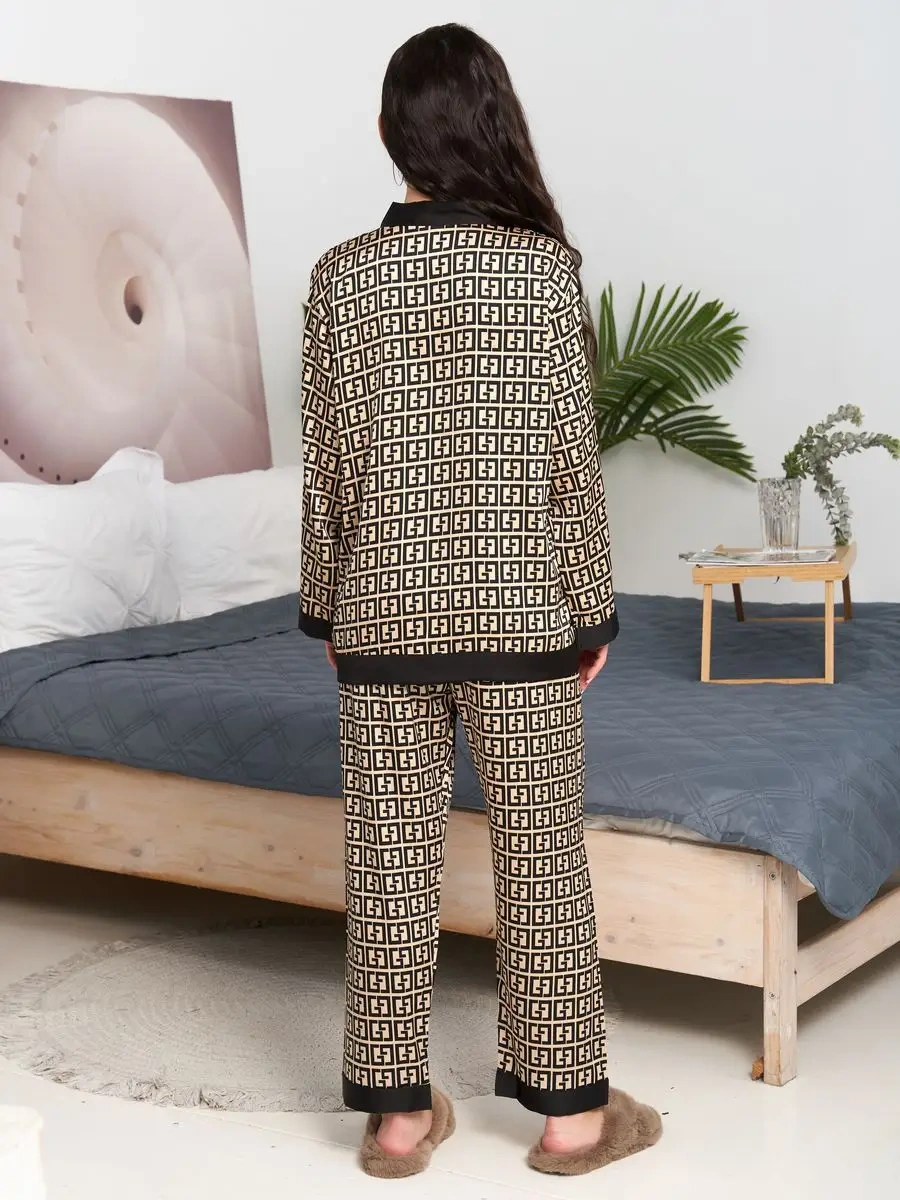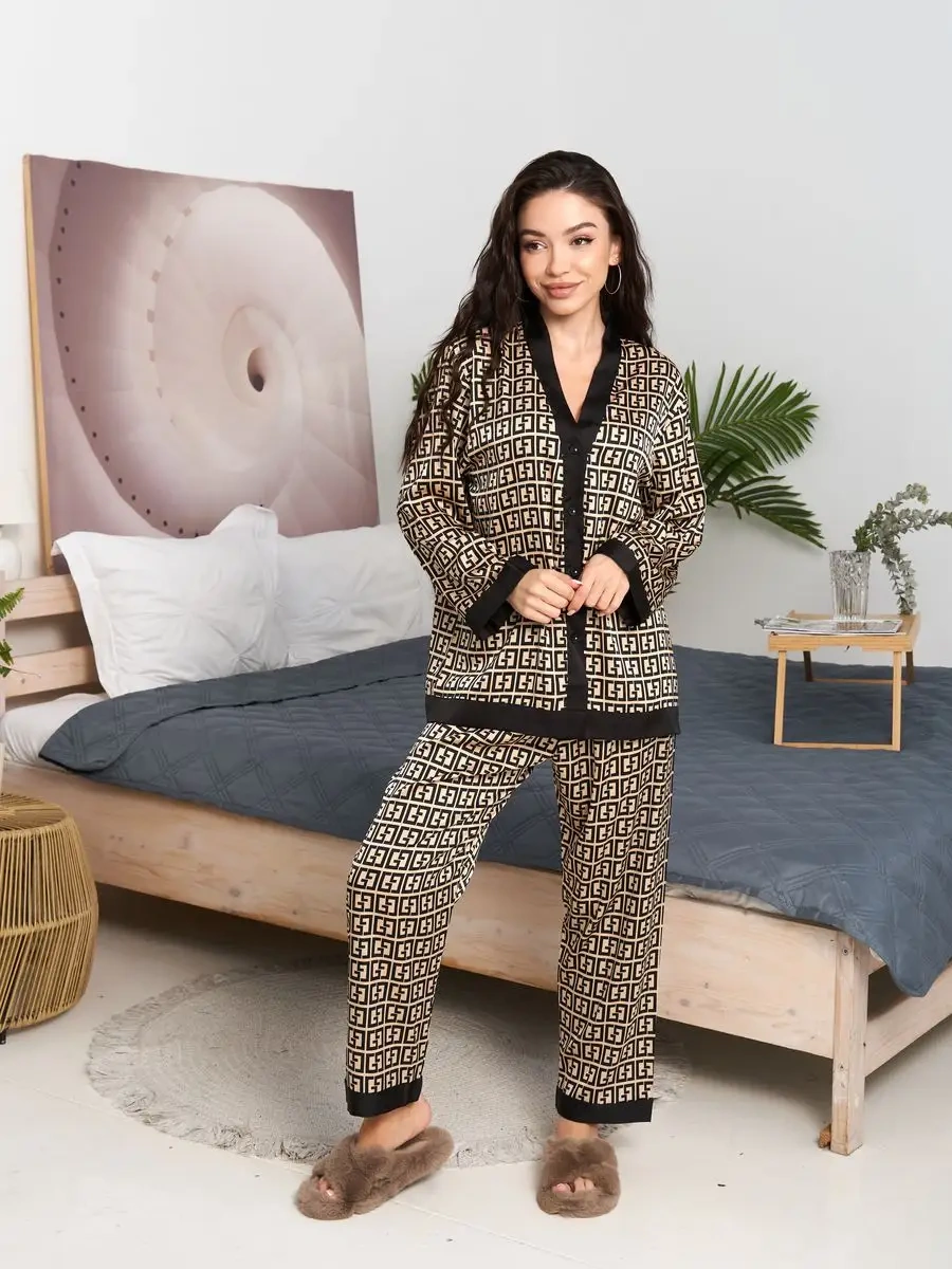 Uutnaa Pizama İpek Ev Pijaması Takımı Pantolon Ve Üstlü 158392610 Altın Rengi