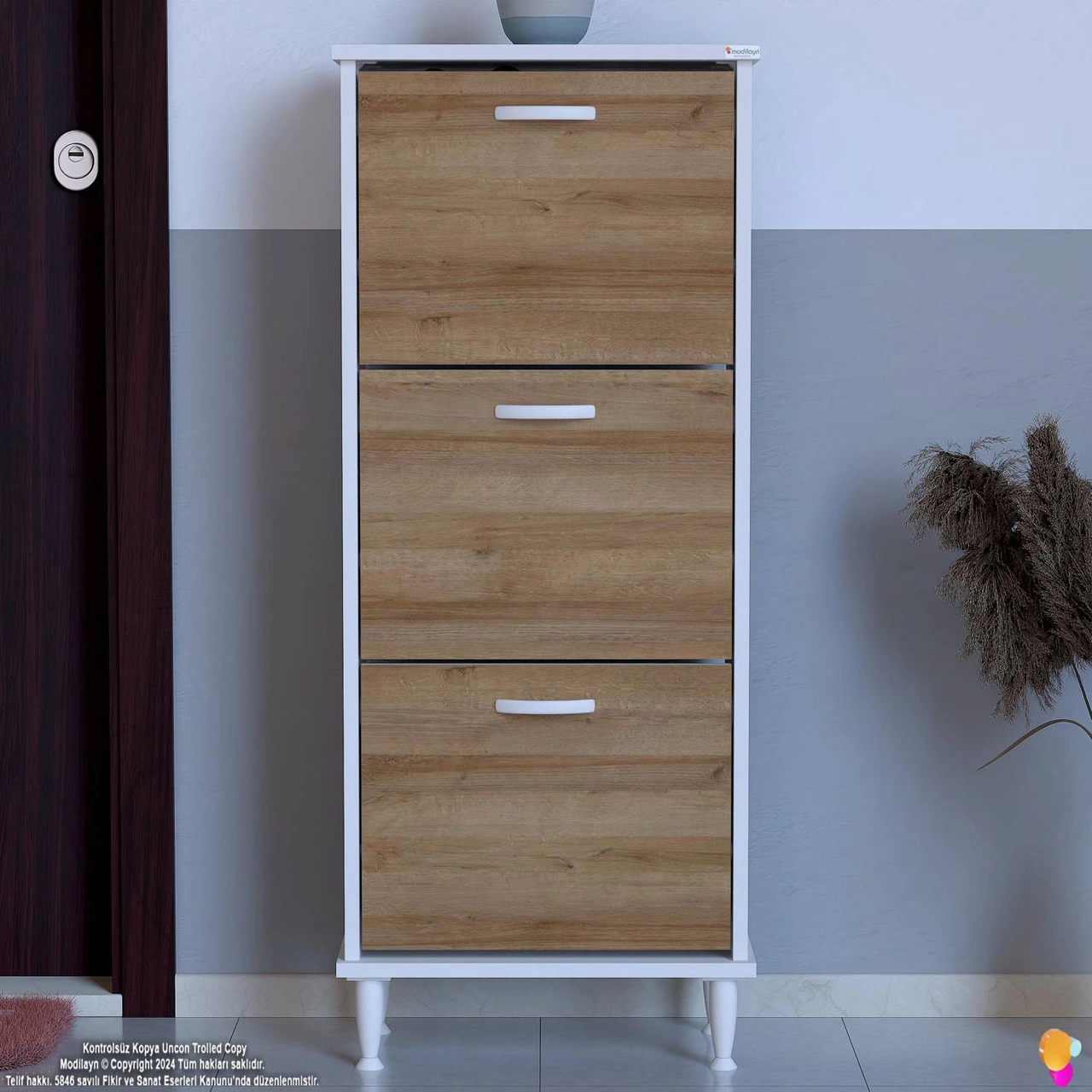 Uygar Meşe Renk Kapı Önü Ayakkabılık 3 Düşer Kapak 6 Göz Raf Bölmeli Ayakkabılık 52x127x25,5 Cm Meşe