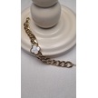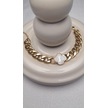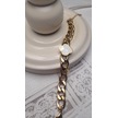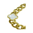 Uzel Çelik Gold Altın Renk Beyaz Sedef Yoncalı Kalın Halka Detaylı Çelik Bileklik Gold