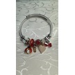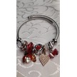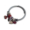 Uzel Çelik Gümüş Silver Model Inci Kalpli, Uğur Böceği Charmlı Çelik Bileklik Kırmızı