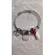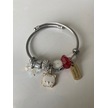 Uzel Çelik Gümüş Silver Model Taşlı, Kedicik Charmlı Çelik Bileklik