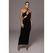 Uzun Göğüs Dekolte Elbise-Siyah