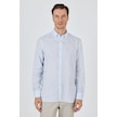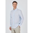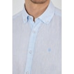 Uzun Kol Düz Keten Düğmeli Yaka Cepsiz Casual Comfort Fit Gömlek 1004250114 Mavi