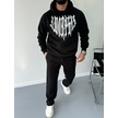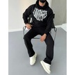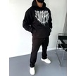 Uzun Kol Kapşonlu Baskılı Sweatshirt - Siyah Siyah