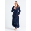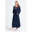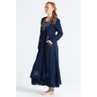 Uzun Kol Şile Bezi Nakışlı Antik Uzun Elbise Lacivert Lcvt-lacivert