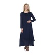 Uzun Kol Şile Bezi Nervürlü Uzun Elbise Lacivert