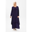 Uzun Kol Şile Bezi Nervürlü Uzun Elbise Mor