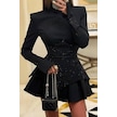 Uzun Kollu Işıltı Mini Elbise - Kristal Elmas Detaylı Kadın S