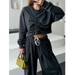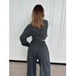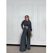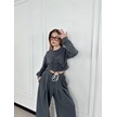 Uzun Kollu Önü İp Büzgülü Crop Ve Pantolon İkili Takım - Antrasit Çok Renkli
