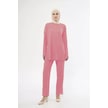 Uzun Kollu Organik Yıkanmış Kumaş Fitilli Pantolonlu Takım - Gül 001