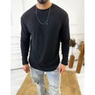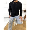 Uzun Kollu Tişört Fitilli Bisiklet Yaka Yumuşak Dokulu Tüylenmez Pamuklu Kazak Sweatshirt Siyah