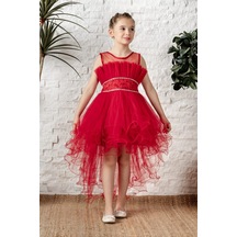 Uzun Kuyruk Tütülü Askılı Kız Filira Elbise Mnk0584 001