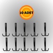 Uzun Noktalı Metal Askı Şık Portmanto Askılık Dolap Mobilya Askısı Vidalar Dahil 10 Adet Siyah