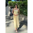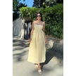 Uzun Pamuklu Yaz Elbisesi Askısı Bağlamalı Astarsız 4301 Sarı