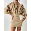 Uzun Yarasa Kollu Kayık Yaka Kısa Triko Elbise Bej Bej