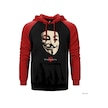 V For Vendetta Maske Kırmızı Reglan Kol Kapşonlu Sweatshirt Kırmızı