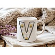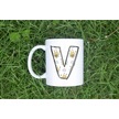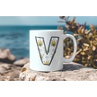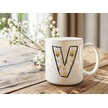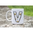 V Harfi Arı Desenli Kupa - Sevimli Hayvan Temalı Kişiye Özel Kahve Kupası - Şans Kupası Beyaz