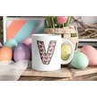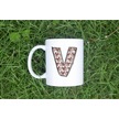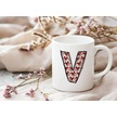V Harfi Aşk Temalı Kupa - Kalp Desenli Kişiye Özel Romantik Sevgililer Günü Kahve Kupası Beyaz