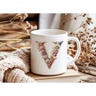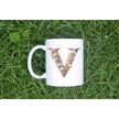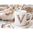 V Harfi Çiçek Desenli Kupa Bardak - Alfabe Harfleri İle Doğal Çiçekli Kupa - Hediye Fikir Beyaz