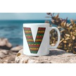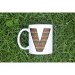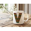 V Harfi Etnik Desenli Kupa - Afrika Tarzı Kahve Çay Kupası - Hediyelik - Black History Beyaz