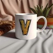 V Harfi Gold Simli Kupa Işıltılı Alfabe Harf Tasarımlı Kahve Kupası - Kişiye Özel Hediye Beyaz
