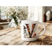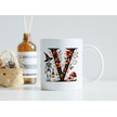 V Harfi Şapkalı İskelet Figürlü Ve Çiçekli Kupa Bardak - Cadılar Bayramı / Halloween Özel Hediye Beyaz