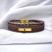 V Harfine Özel 14 Ayar Altın Plakalı Kahverengi Derili Dikdörtgen Figürlü Hediye Bileklik-531harf W