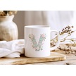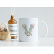 V Harfli Çiçek Desenli Kupa Bardak - Ekose Desenli Yeşil Pembe Desenli Tasarım - Kişiye Özel Hediye Beyaz