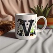 V Harfli Halloween Kedili Figür Kupa Bardak - Şapkalı Ve Kazanlı İsme Özel Kupa - Hediye Beyaz