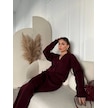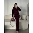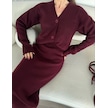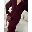 V Yaka 3 Düğmeli Hırka Takım Triko İkili Etekli - Bordo Bordo
