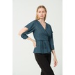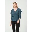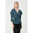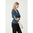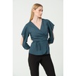 V Yaka Bağcıklı Kol Detaylı Bluz Petrol Mavi