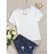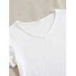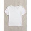 V Yaka Beyaz Renk Fitilli Kısa Kollu Slim Fit Crop Top Bluz