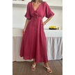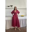 V Yaka Dökümlü Elbise - Pembe Pembe