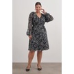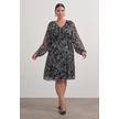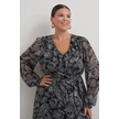 V Yaka Fırfırlı Kuşaklı Elbise-3366 Siyah