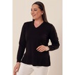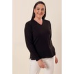 V Yaka Kolları Modelli Yanları Yırtmaçlı Büyük Beden Akrilik Kaza Siyah