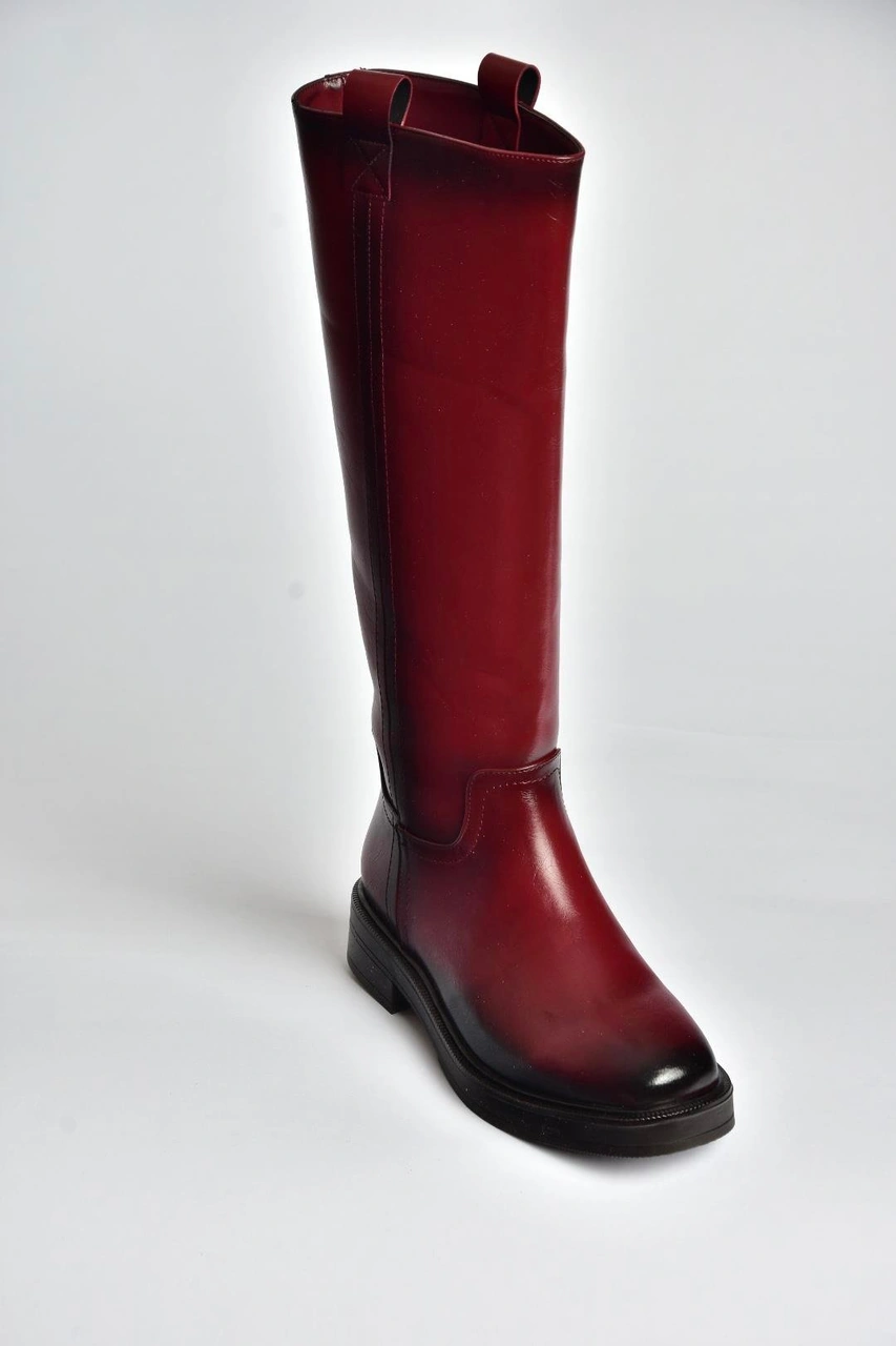 V312513560 Bordo Rustik Alçak Topuklu Kadın Çizme Bordo-rustik