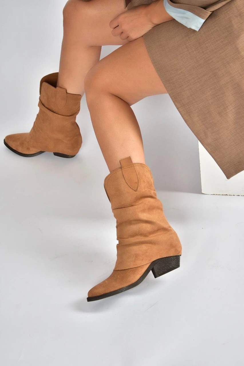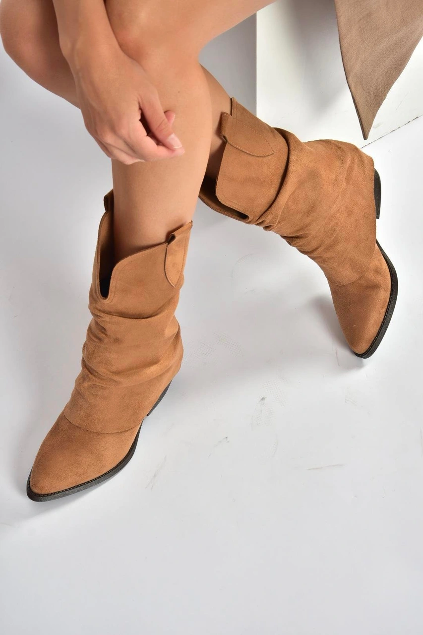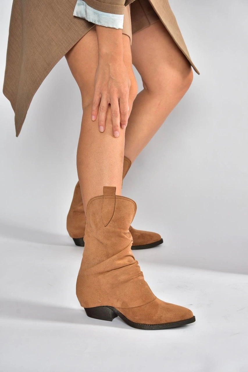 V404041002 Taba Süet Kalın Topuklu Kadın Bot Taba-Süet