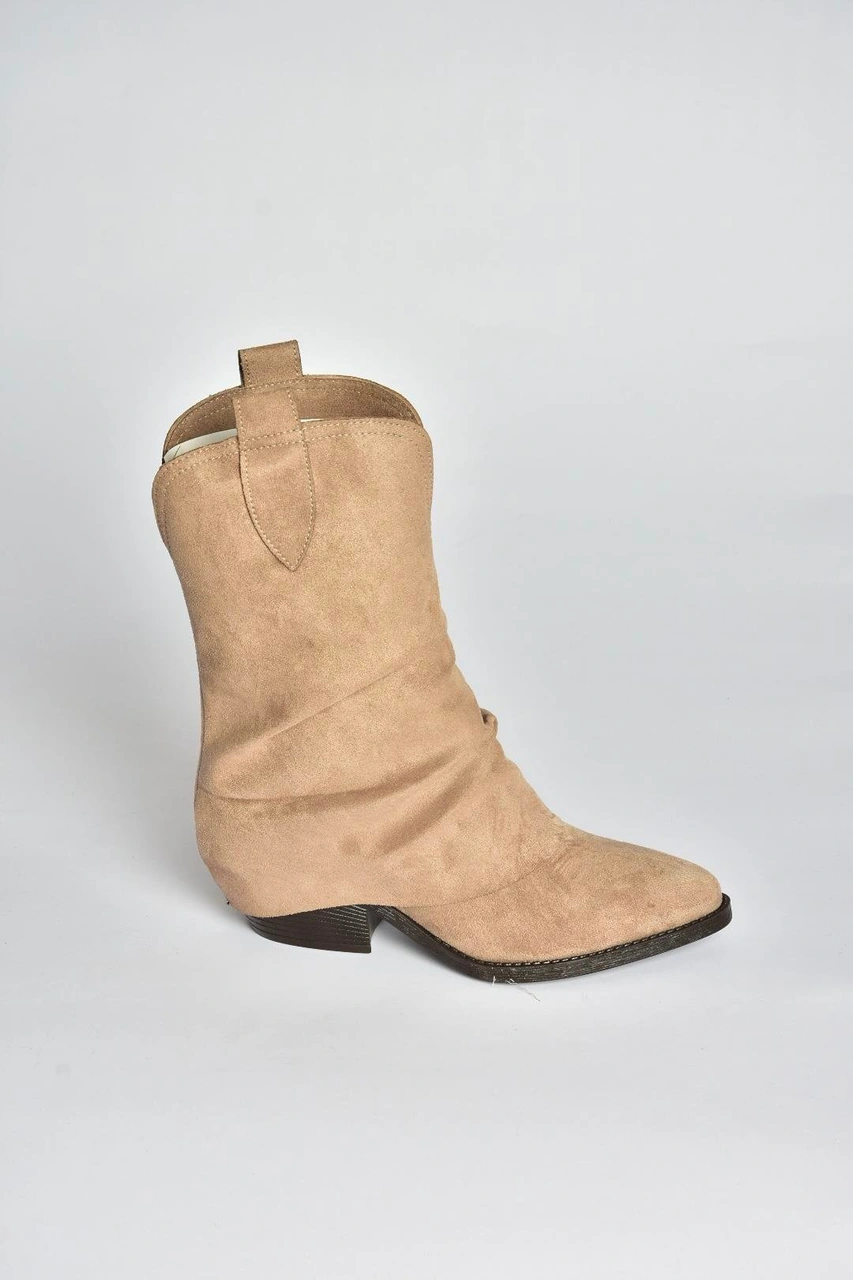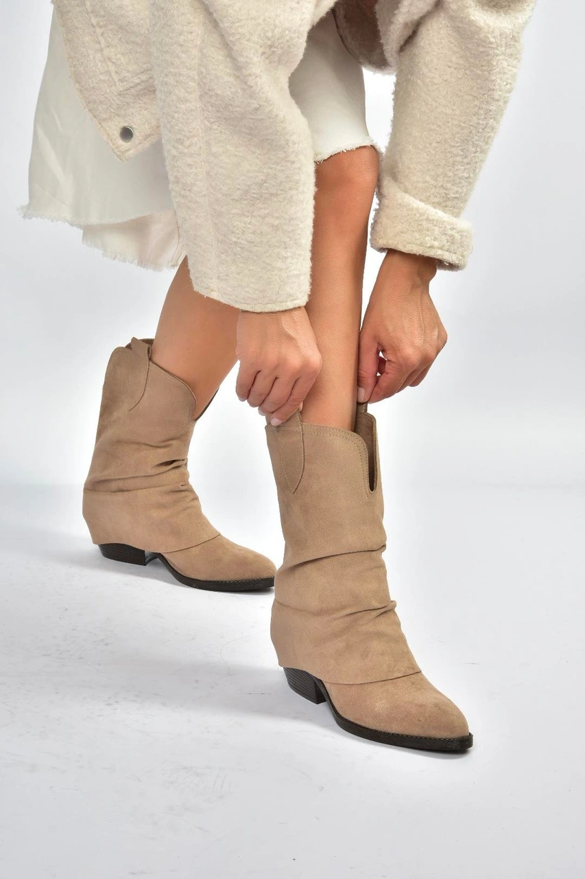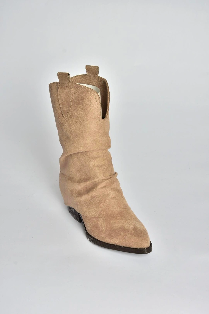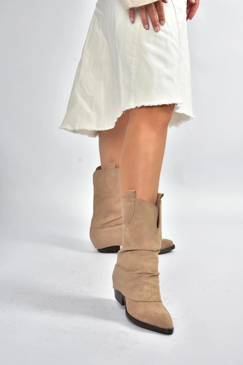 V404041002 Vizon Süet Kalın Topuklu Kadın Bot Vizon-Süet