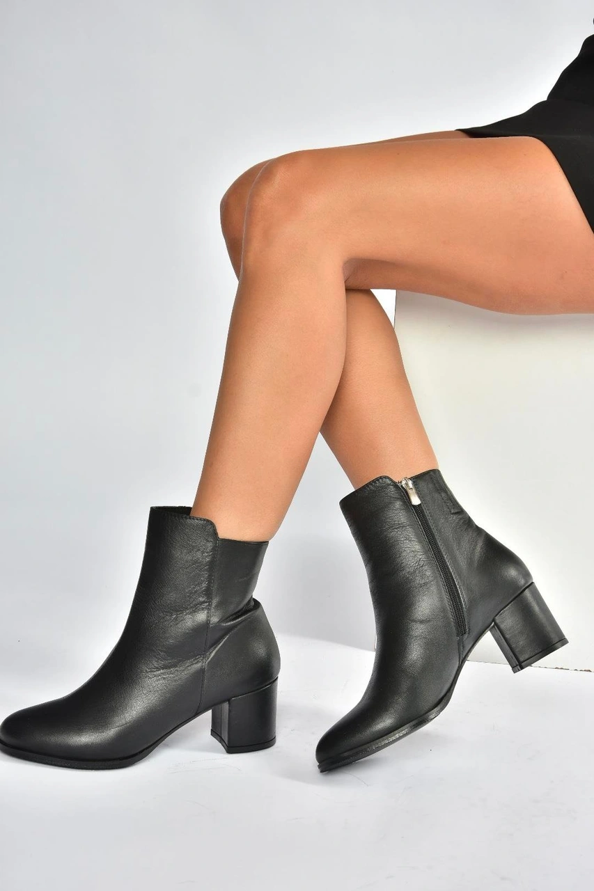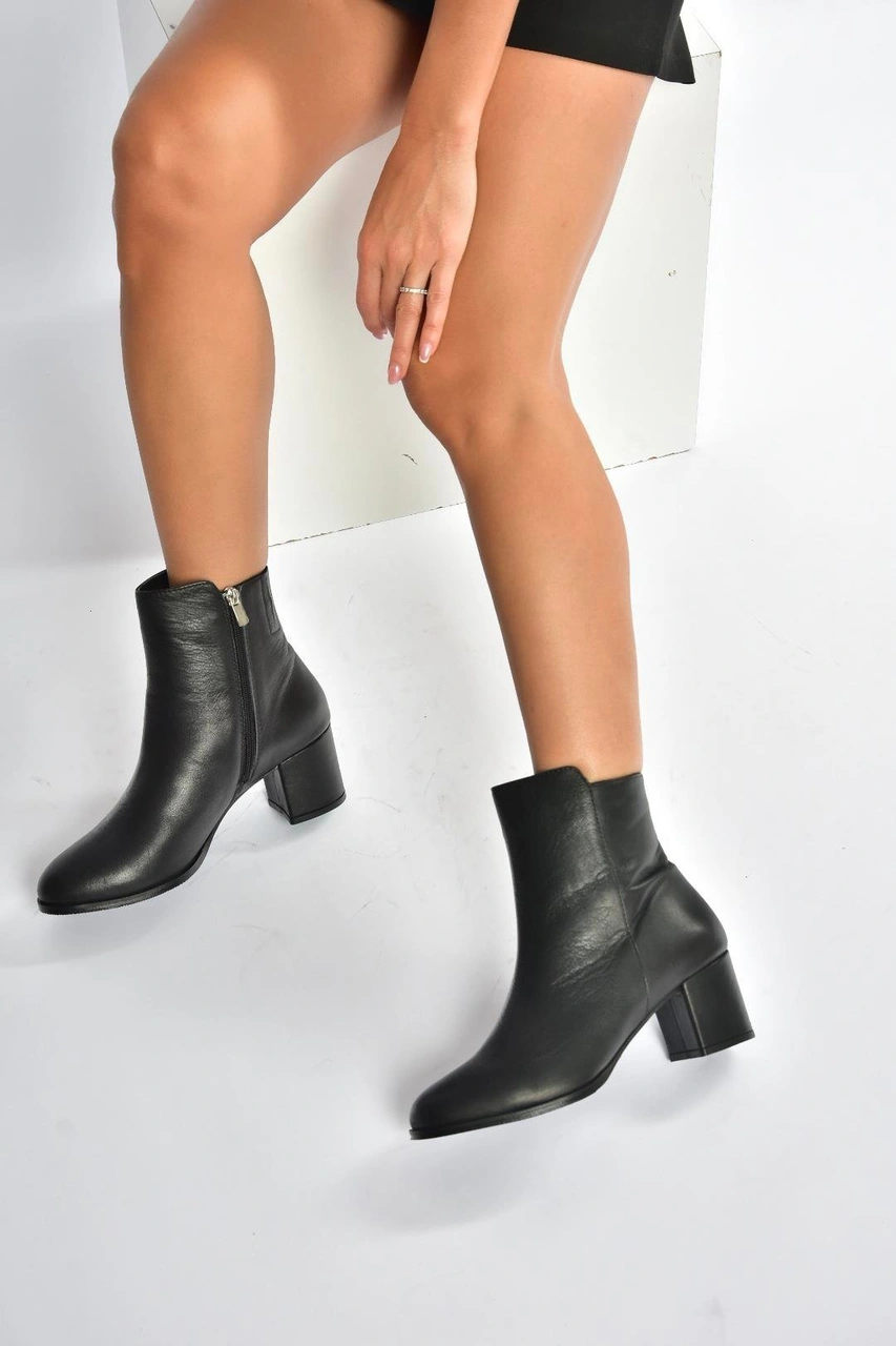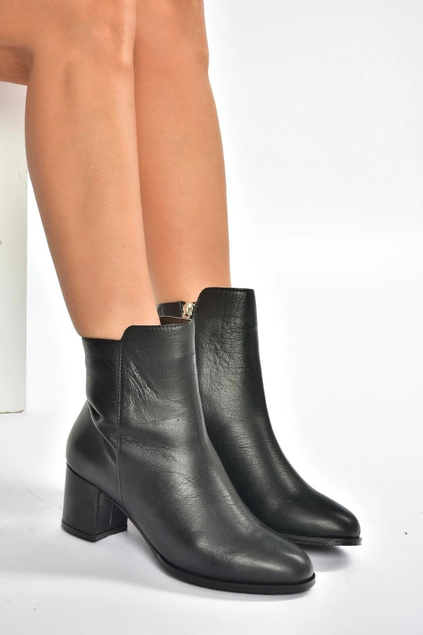 V468581003 Siyah Hakiki Deri Kalın Topuklu Kadın Bot Siyah-hakiki Deri