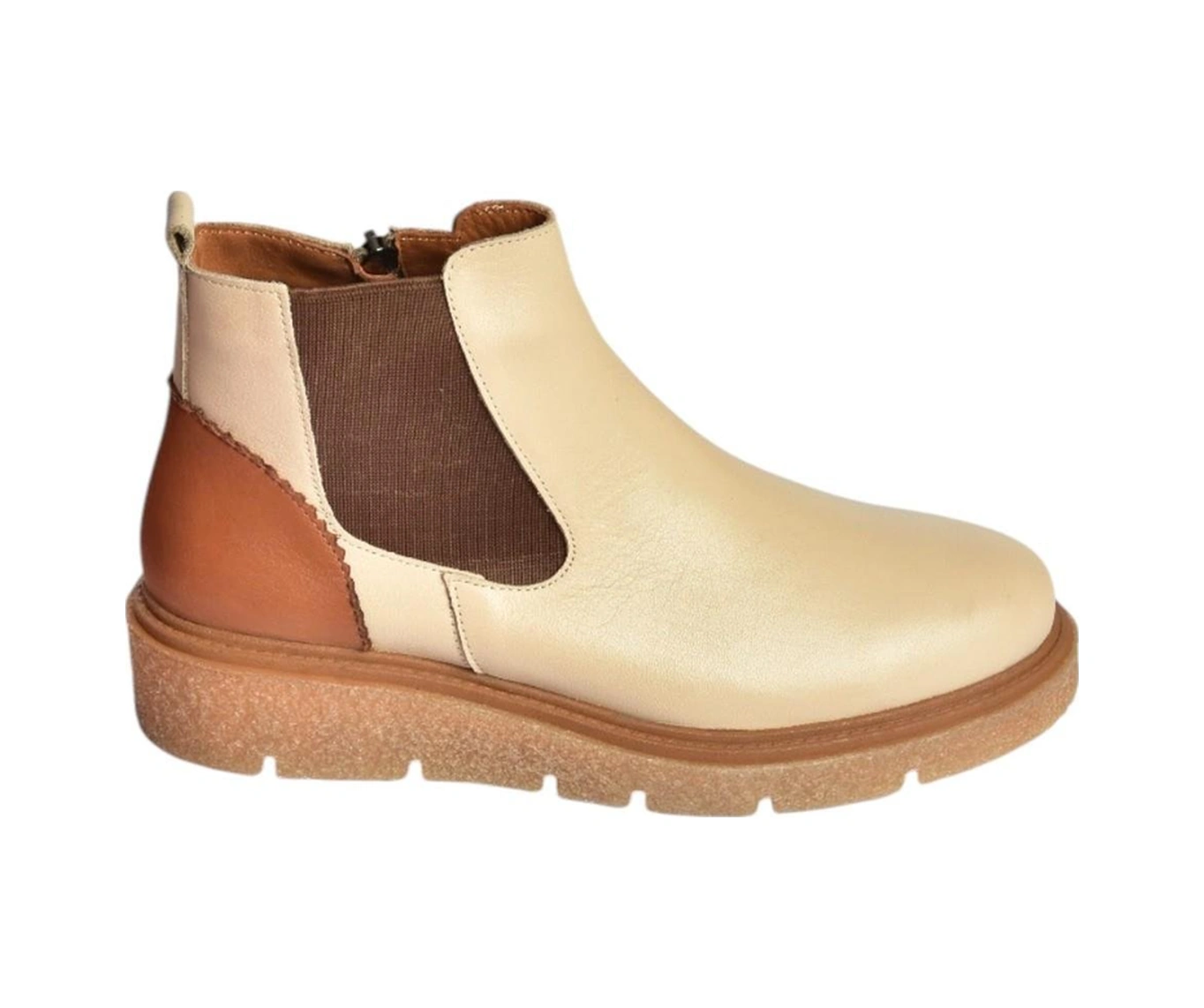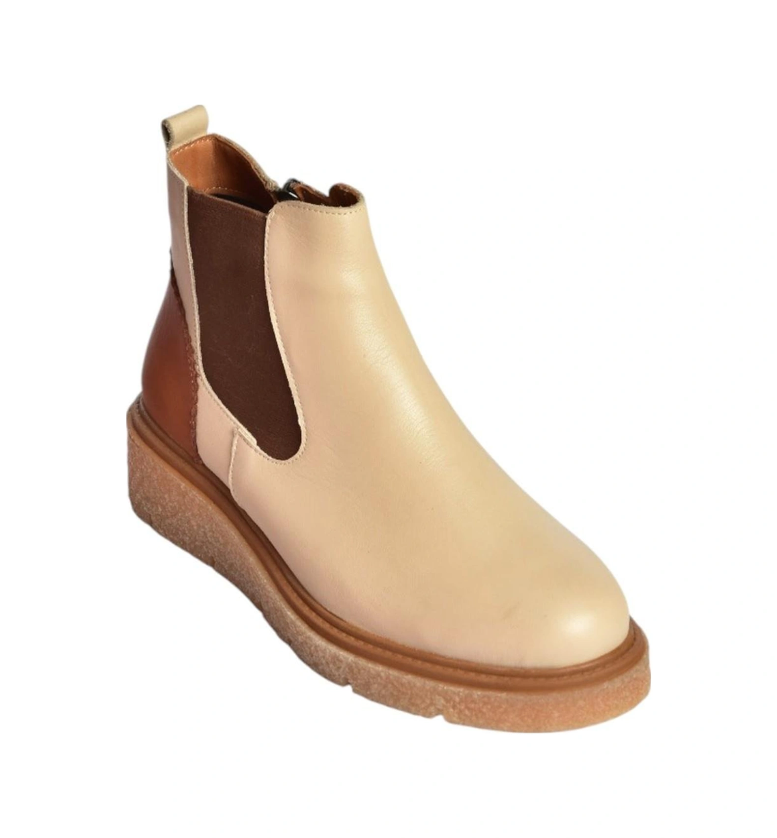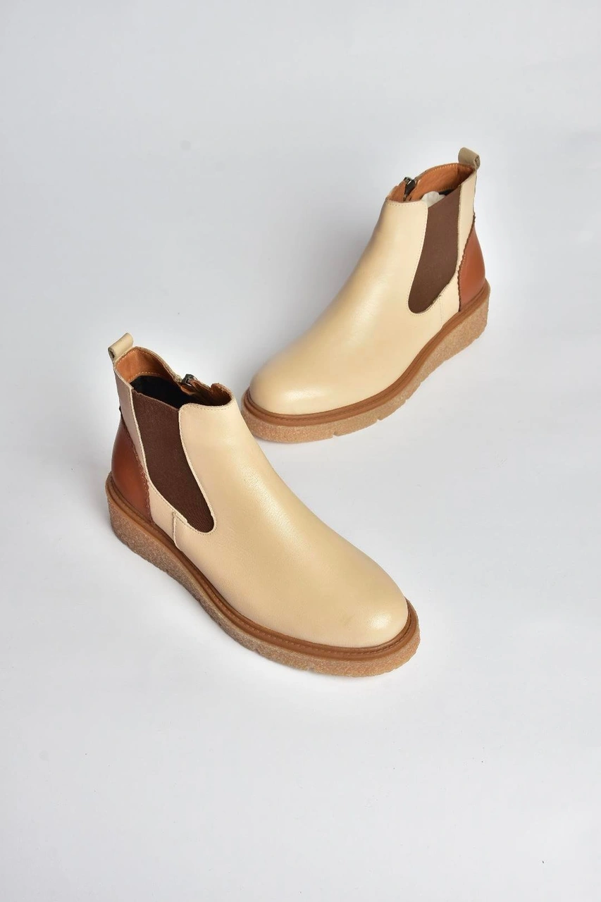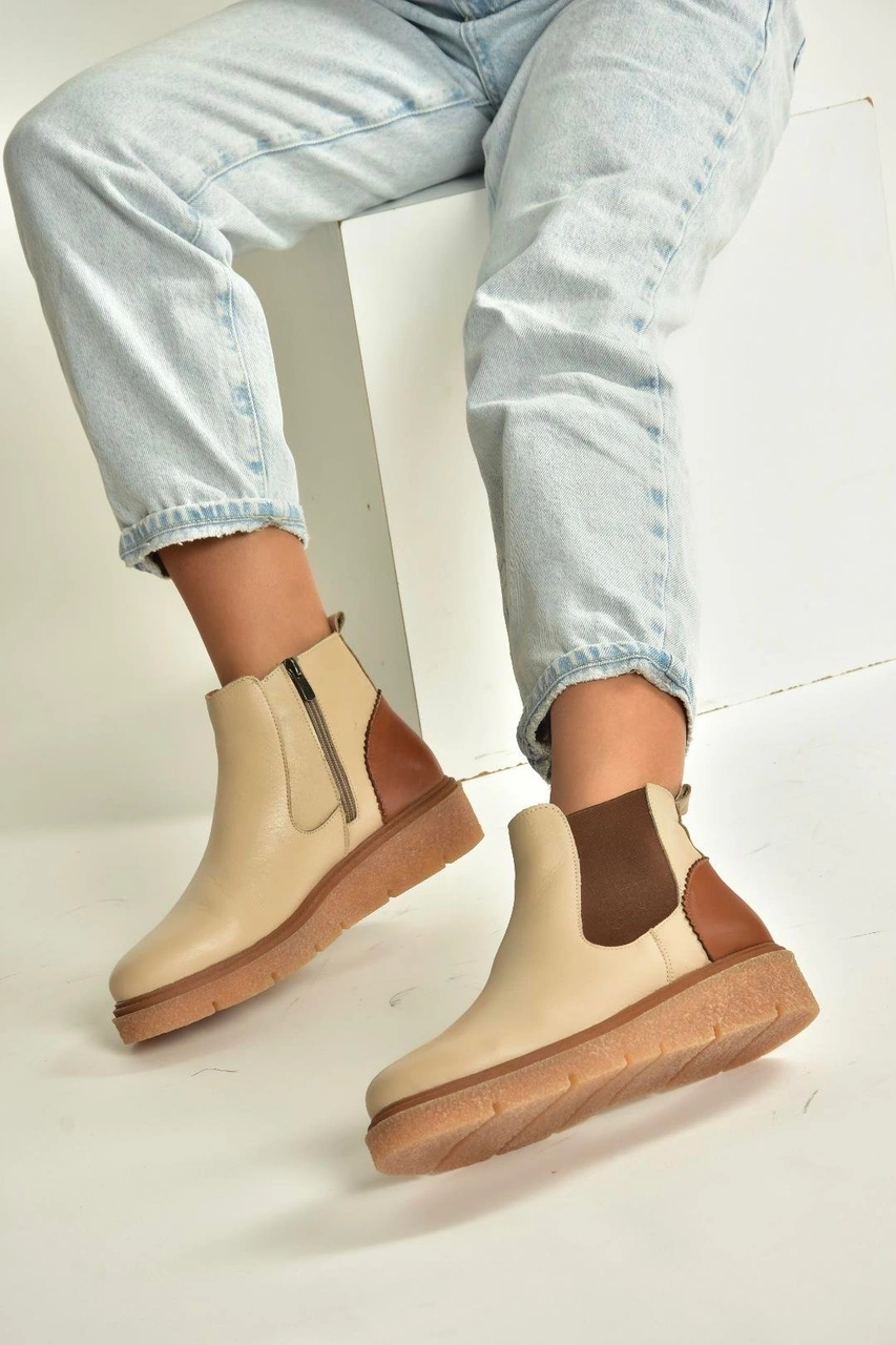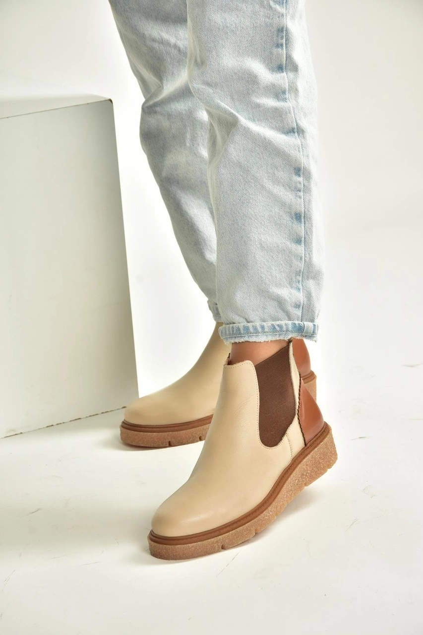 V555115103 Bej Hakiki Deri Kalın Tabanlı Kadın Bot Bej-hakiki Deri