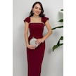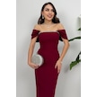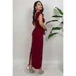 Valentia Madonna Yaka Taş İşlemeli Kalem Bordo Abiye Elbise, Zarif Davet Elbisesi Bordo