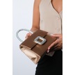 Valeria Koyu Bej Saten Taşlı Kadın El Çantası Koyu Bej