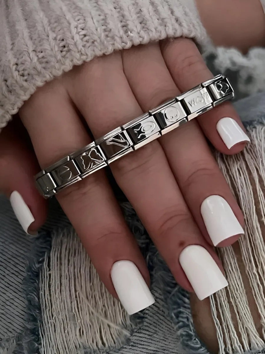 Erkekler Bilezik Küba Link Zinciri Katı Miami Kadın Kaplama Bordür Bileklik Takı 17x0.6 Cm 18x1.2cm Gümüş