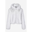 Kapüşonlu Düğmeli Peluş Mont - Kadın Beyaz