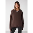 VANELTINA Kadın Organik Pamuklu Yumuşacık İçi Polarlı Yuvarlak yakalı Kahverengi Sweatshirt
