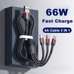 Vaorlo 1.2m 1.8m 3 In 1 Veri Kablosu Mikro/tip-c/8pin 66w Hızlı Şarj Kablosu Desteği Veri İletimi Telefon Hattı 1.8m