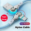Vaorlo Çift 180 Dönebilen Şarj Kablosu Naylon Veri Kablosu Tip-c 65w Hızlı Şarj Xiaomi Huawei Telefon Hattı İçin