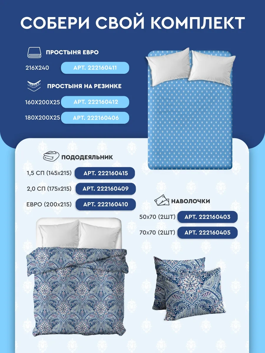 Vasilisa Yastık Kılıfları 70x70 Cm, 2 Adet, Poplin Kumaş, %100 Pamuk 222160405 Mavi